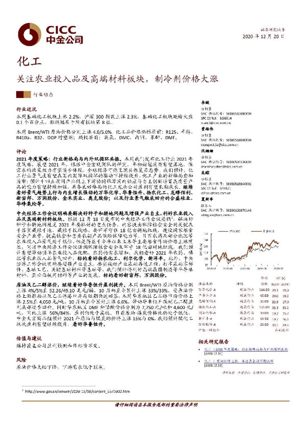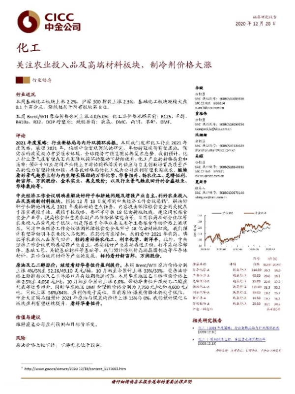 【中金公司】【20201220】20201220-中金公司-化工行业动态:关注农业投入品及高端材料板块,制冷剂价格大涨-16页
