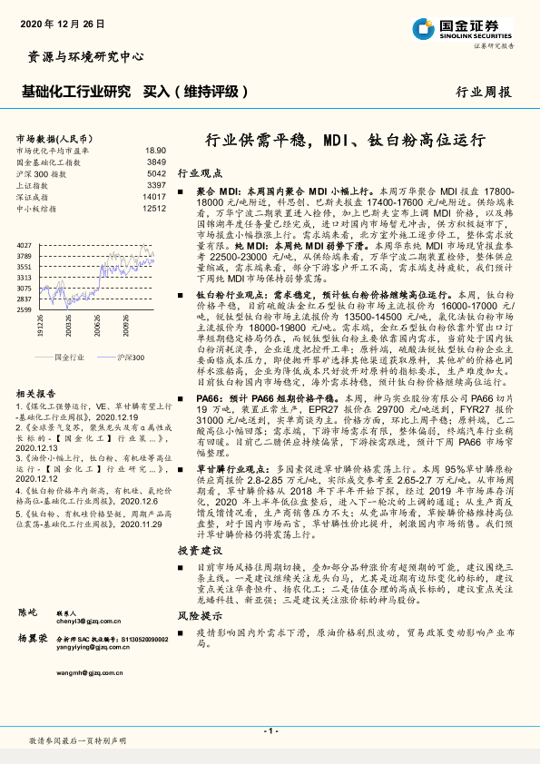 【国金证券】【20201226】基础化工行业研究:行业供需平稳,MDI、钛白粉高位运行-16页