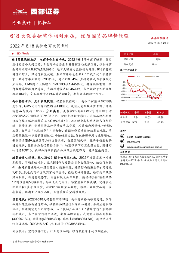 【西部证券】【20220624】化妆品行业2022年6.18美妆电商大促点评:618大促美妆整体相对承压,优质国货品牌势能强-19页