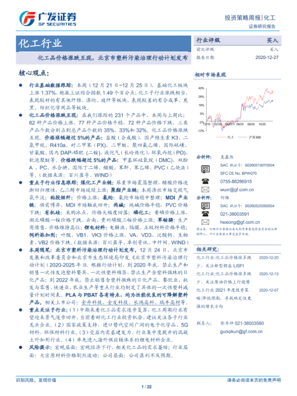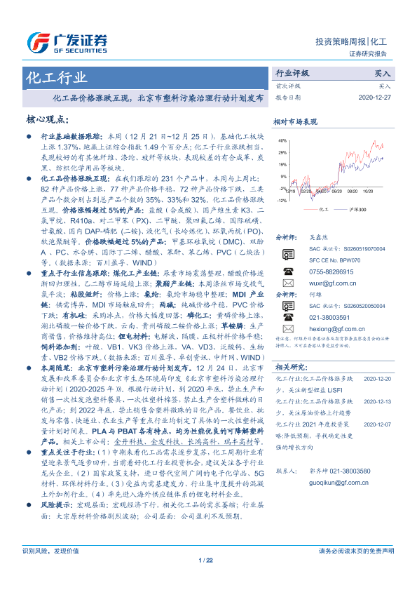 【广发证券】【20201227】化工品价格涨跌互现,北京市塑料污染治理行动计划发布-22页