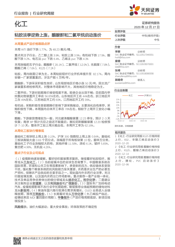 【天风证券】【20201227】20201227-天风证券-化工行业研究周报:粘胶淡季逆势上涨,醋酸酐和二氯甲烷启动涨价-21页