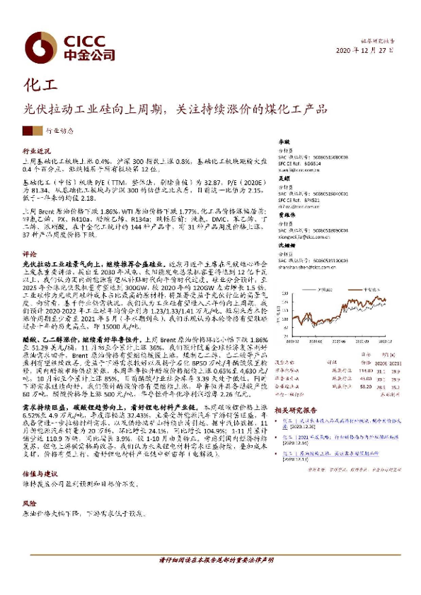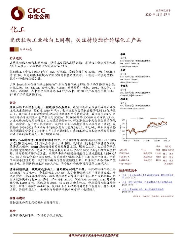 【中金公司】【20201227】20201227-中金公司-化工行业动态:光伏拉动工业硅向上周期,关注持续涨价的煤化工产品-17页