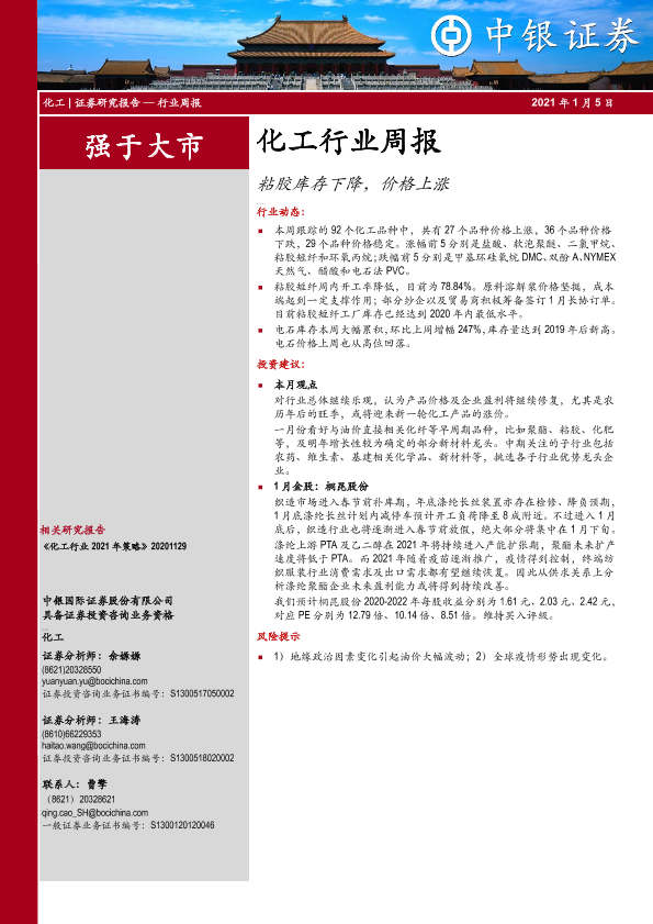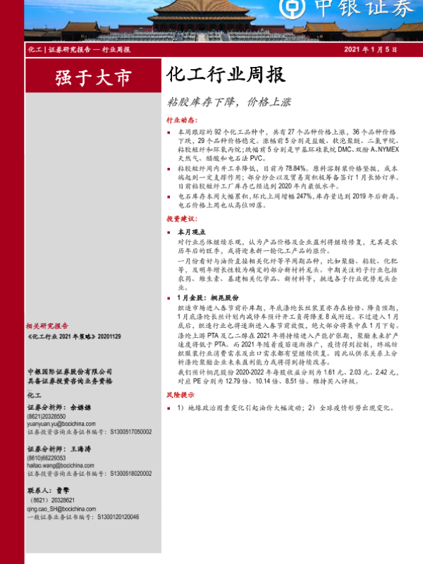 【中银证券】【20210105】20210105-中银证券-化工行业周报:粘胶库存下降,价格上涨-10页