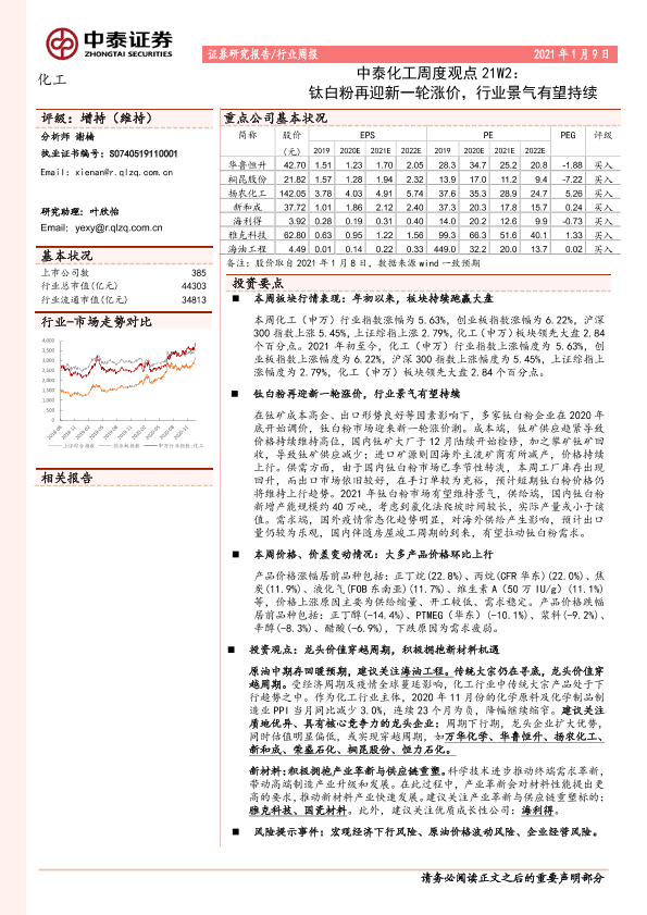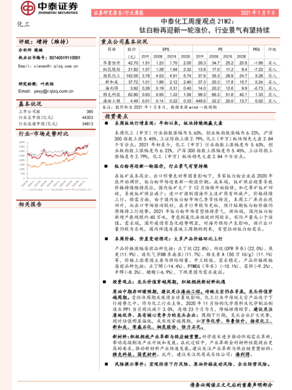 【中泰证券】【20210109】20210109-中泰证券-化工周度观点21W2:钛白粉再迎新一轮涨价,行业景气有望持续-26页