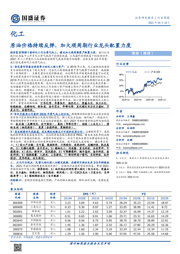 【国盛证券】【20210110】20210110-国盛证券-化工行业周报:原油价格持续反弹,加大顺周期行业龙头配置力度-11页