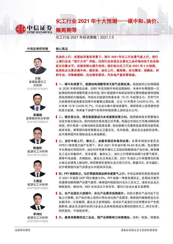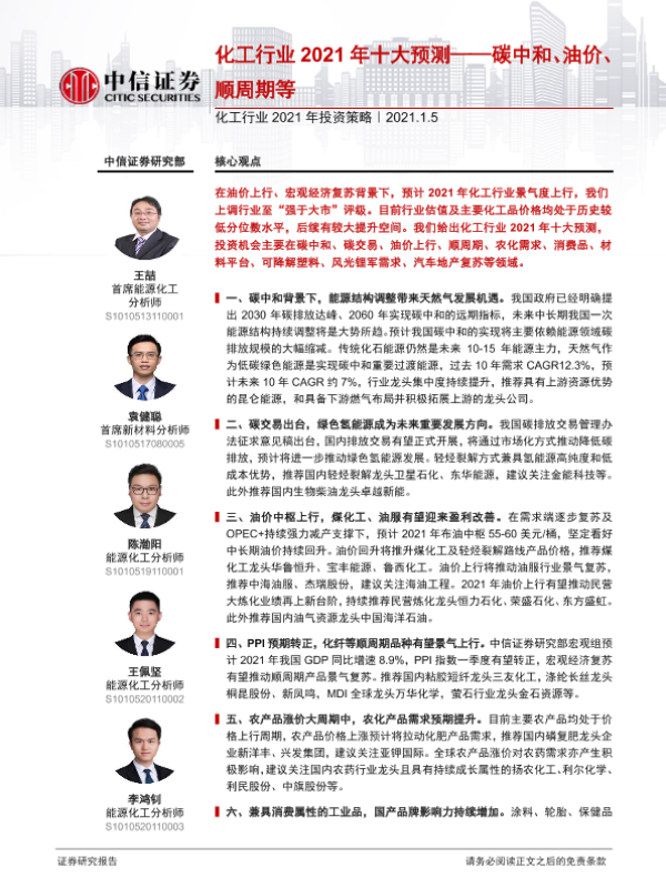 【中信证券】【20210105】化工行业2021年投资策略:化工行业2021年十大预测——碳中和、油价、顺周期等-71页