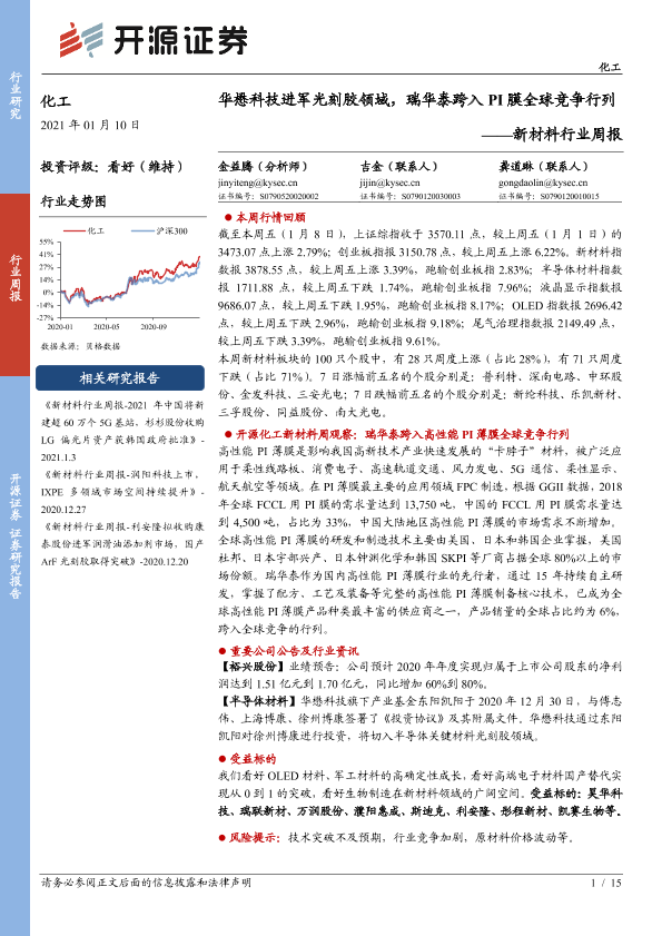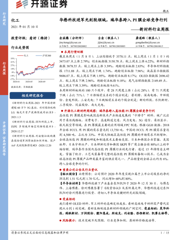 【开源证券】【20210110】新材料行业周报:华懋科技进军光刻胶领域,瑞华泰跨入PI膜全球竞争行列-15页
