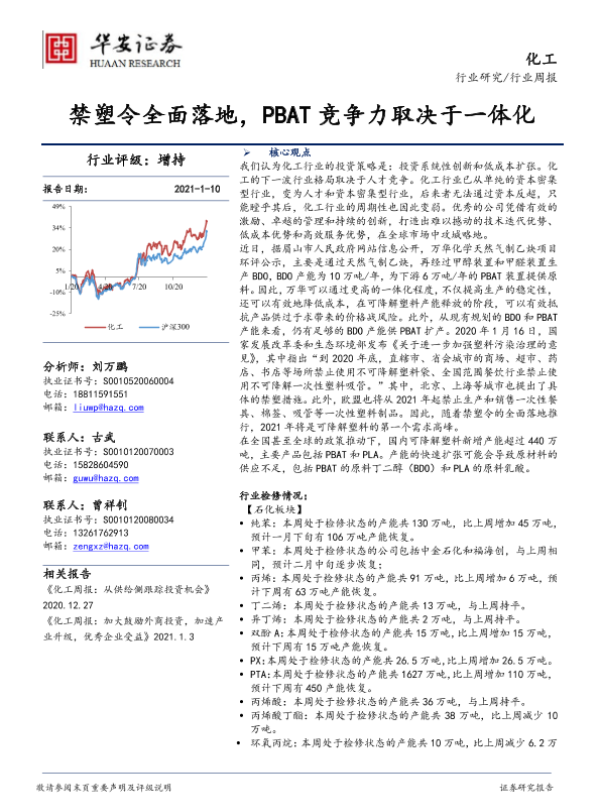 【华安证券】【20210110】化工行业周报:禁塑令全面落地,PBAT竞争力取决于一体化-61页