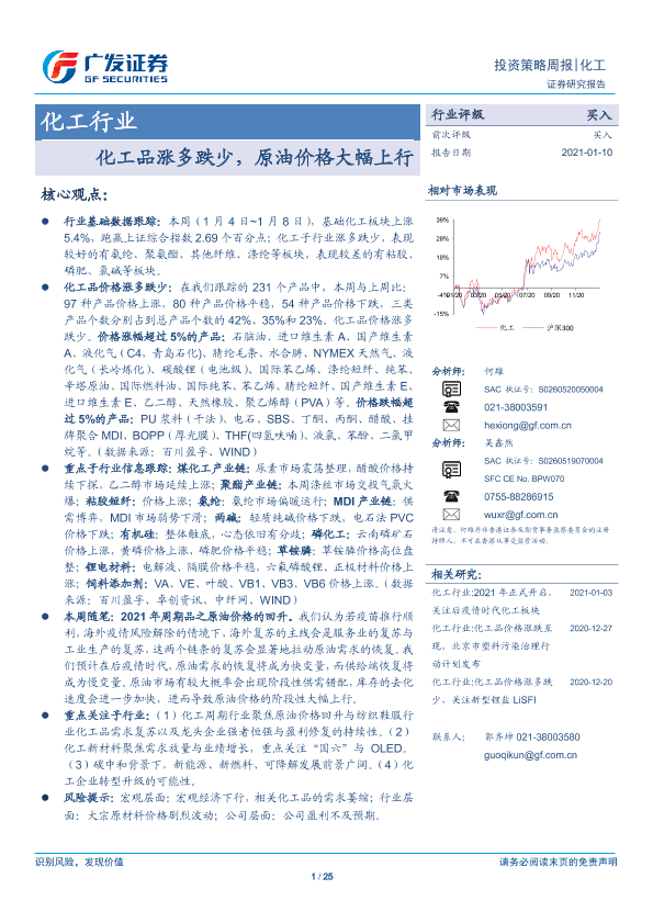 【广发证券】【20210110】20210110-广发证券-化工行业投资策略周报:化工品涨多跌少,原油价格大幅上行-25页