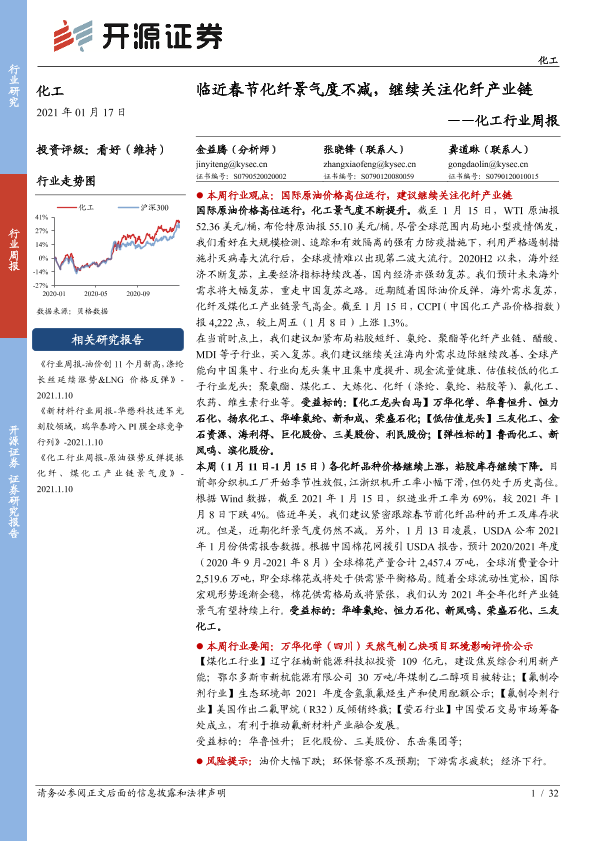 【开源证券】【20210117】化工行业周报:临近春节化纤景气度不减,继续关注化纤产业链-32页