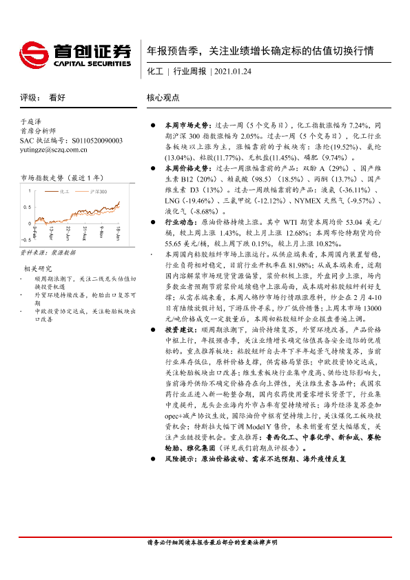 【首创证券】【20210124】20210124-首创证券-化工行业周报:年报预告季,关注业绩增长确定标的估值切换行情-11页