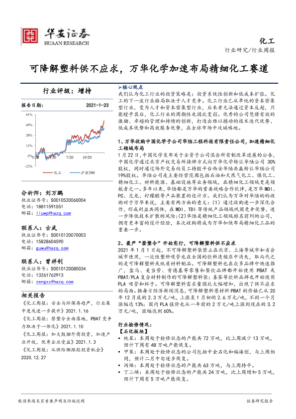 【华安证券】【20210123】20210123-华安证券-化工行业周报:可降解塑料供不应求,万华化学加速布局精细化工赛道-65页