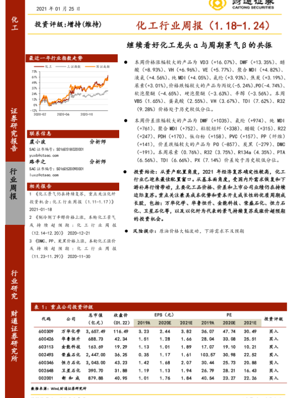 【财通证券】【20210125】20210125-财通证券-化工行业周报:继续看好化工龙头α与周期景气β的共振-6页