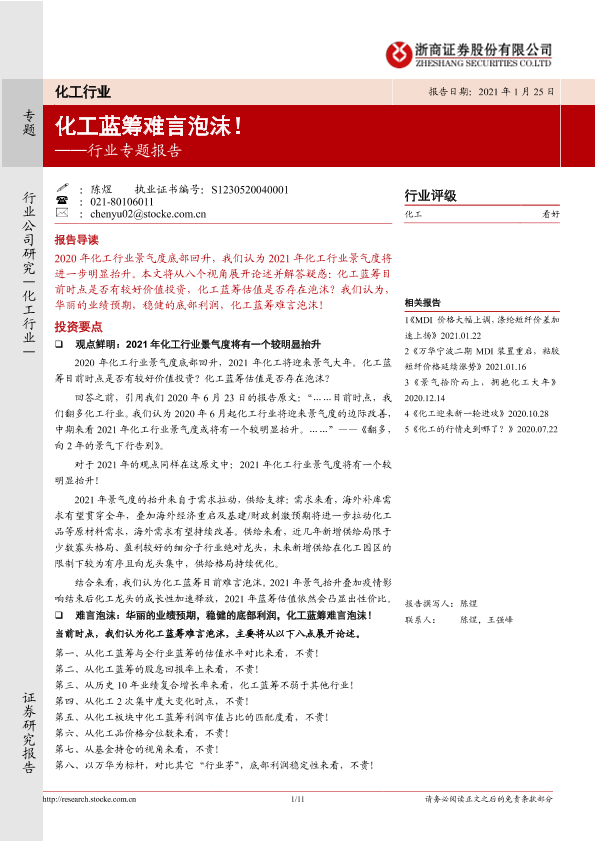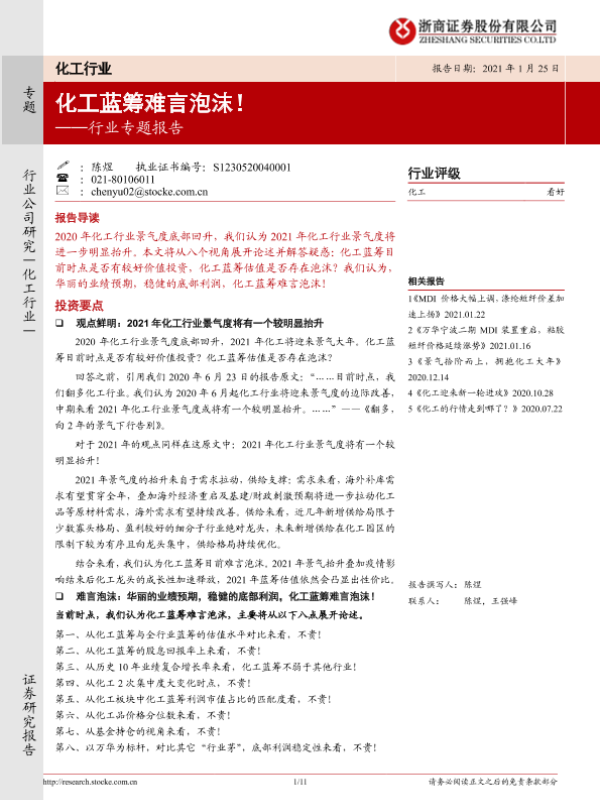 【浙商证券】【20210125】20210125-浙商证券-化工行业专题报告:化工蓝筹难言泡沫!-11页