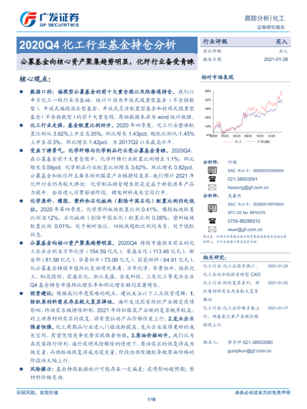 【广发证券】【20210128】2020Q4化工行业基金持仓分析:公募基金向核心资产聚集趋势明显,化纤行业备受青睐-19页