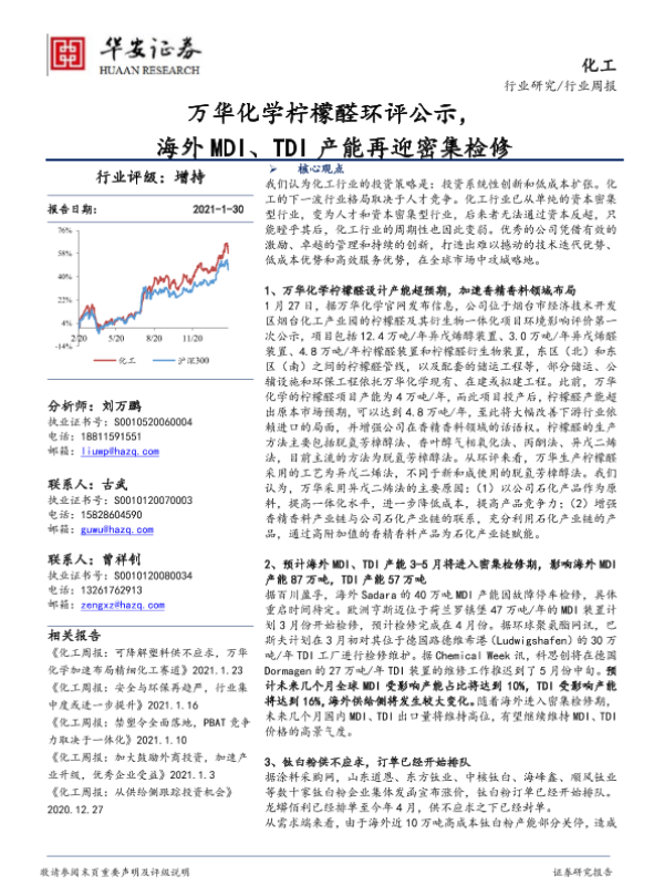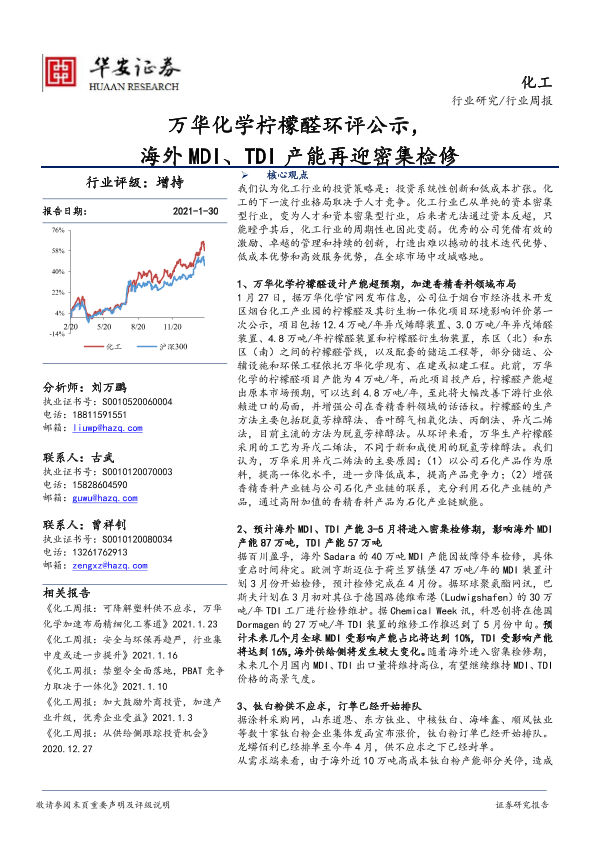【华安证券】【20210130】20210130-华安证券-化工行业周报:万华化学柠檬醛环评公示,海外MDI、TDI产能再迎密集检修-63页