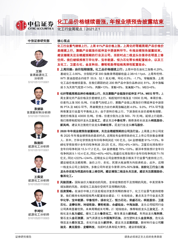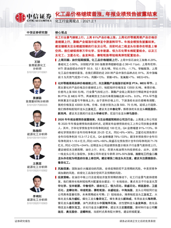 【中信证券】【20210201】20210201-中信证券-化工行业周观点:化工品价格继续普涨,年报业绩预告披露结束-3页