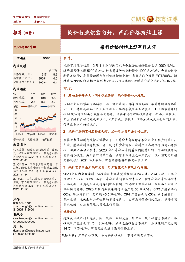 【海通证券】【20210201】染料价格持续上涨事件点评:染料行业供需向好,产品价格持续上涨-3页