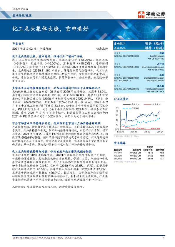 【华泰证券】【20210202】基础化工:化工龙头集体大涨,重申看好-5页