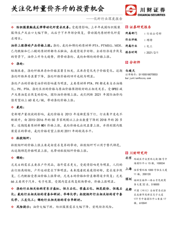 【川财证券】【20210201】化纤行业深度报告:关注化纤量价齐升的投资机会-33页