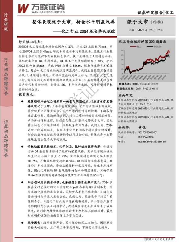 【万联证券】【20210202】化工行业20Q4基金持仓跟踪:整体表现优于大市,持仓水平明显改善-7页