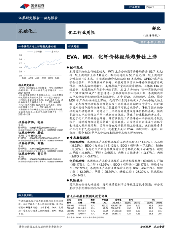 【国信证券】【20210205】20210205-国信证券-化工行业周报:EVA、MDI、化纤价格继续趋势性上涨-16页