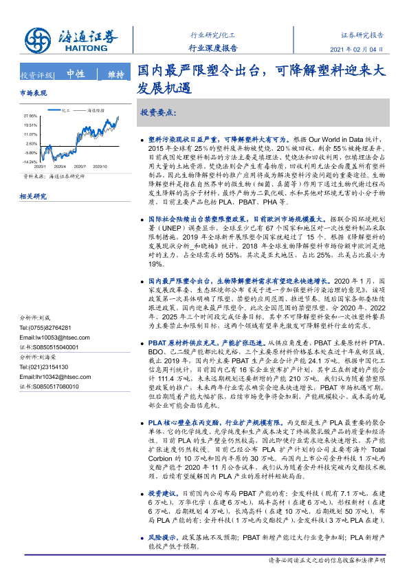【海通证券】【20210204】20210204-海通证券-化工行业深度报告:国内最严限塑令出台,可降解塑料迎来大发展机遇-18页