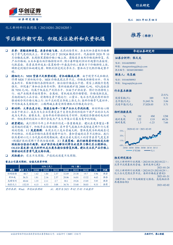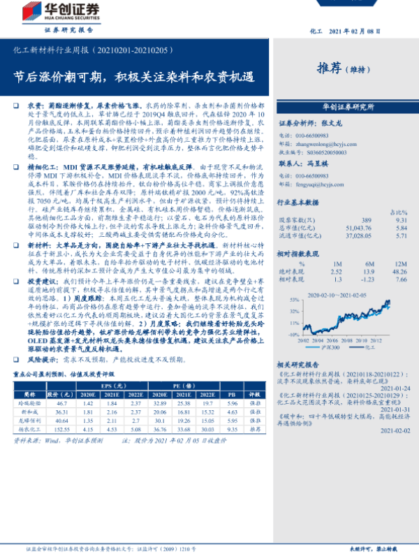 【华创证券】【20210208】20210208-华创证券-化工新材料行业周报:节后涨价潮可期,积极关注染料和农资机遇-24页