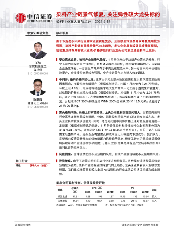 【中信证券】【20210218】染料产业链景气修复,关注弹性较大龙头标的-2页