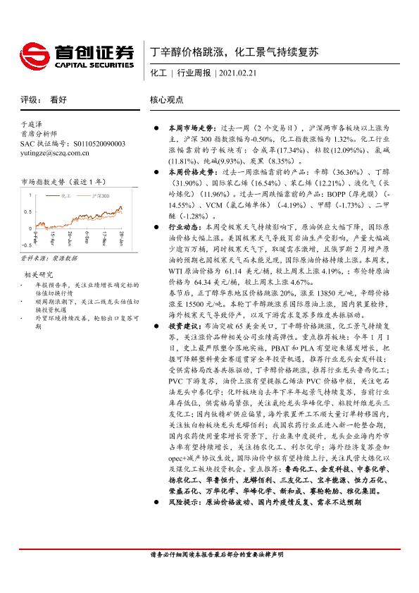 【首创证券】【20210221】20210221-首创证券-化工行业周报:丁辛醇价格跳涨,化工景气持续复苏-14页