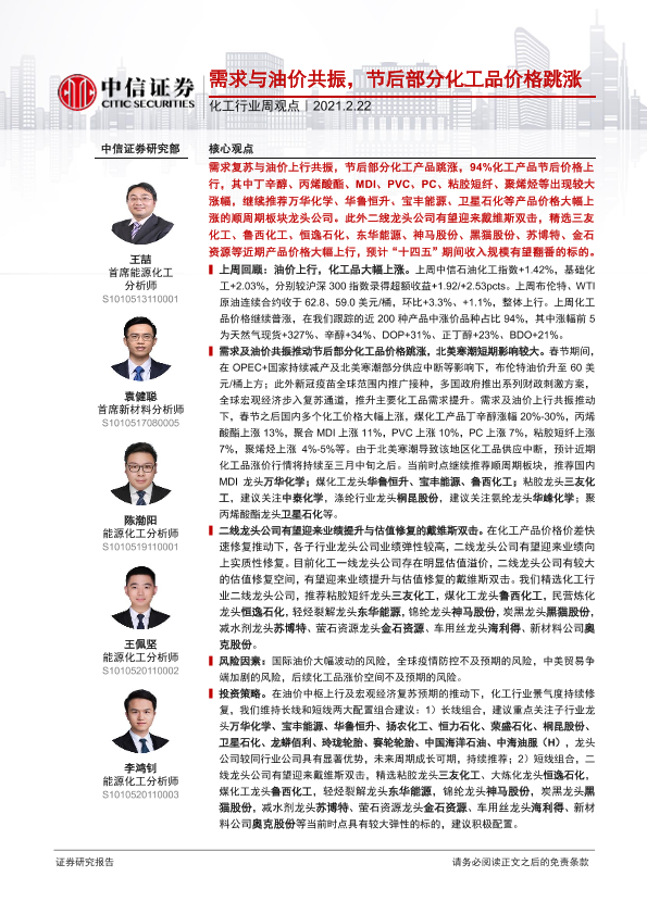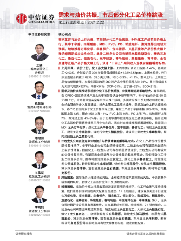 【中信证券】【20210222】20210222-中信证券-化工行业周观点:需求与油价共振,节后部分化工品价格跳涨-3页