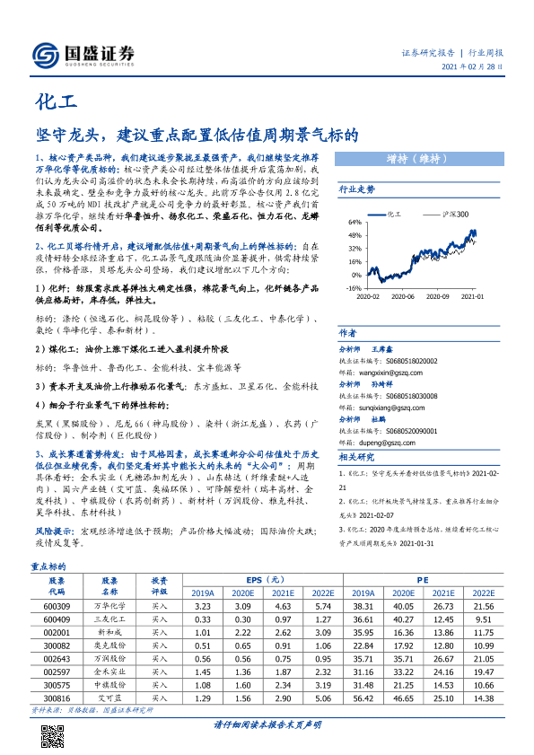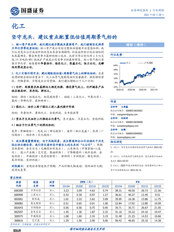 【国盛证券】【20210228】20210228-国盛证券-化工行业周报:坚守龙头,建议重点配置低估值周期景气标的-10页