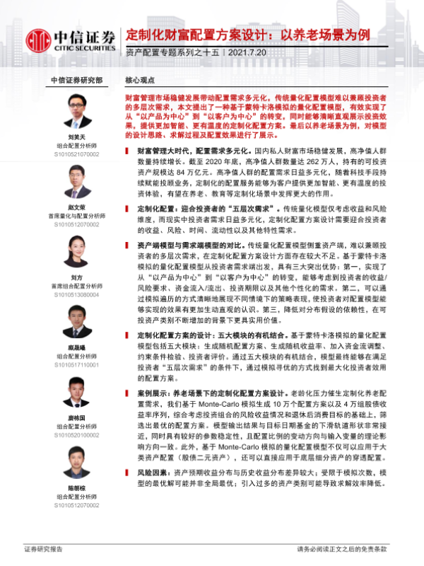 【中信证券】【20210720】资产配置专题系列之十五:定制化财富配置方案设计,以养老场景为例-22页
