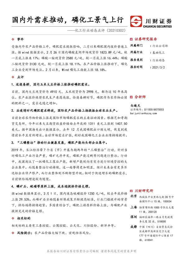 【川财证券】【20210302】化工行业动态点评:国内外需求推动,磷化工景气上行-2页