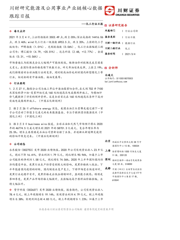 【川财证券】【20210304】20210304-川财证券-化工行业日报:川财研究能源及公用事业产业链核心数据跟踪日报-3页