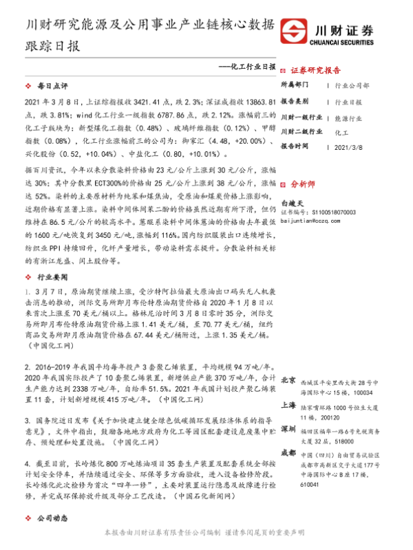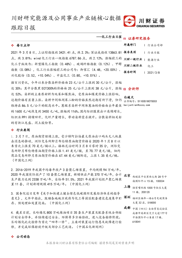 【川财证券】【20210308】化工行业日报:川财研究能源及公用事业产业链核心数据跟踪日报-4页