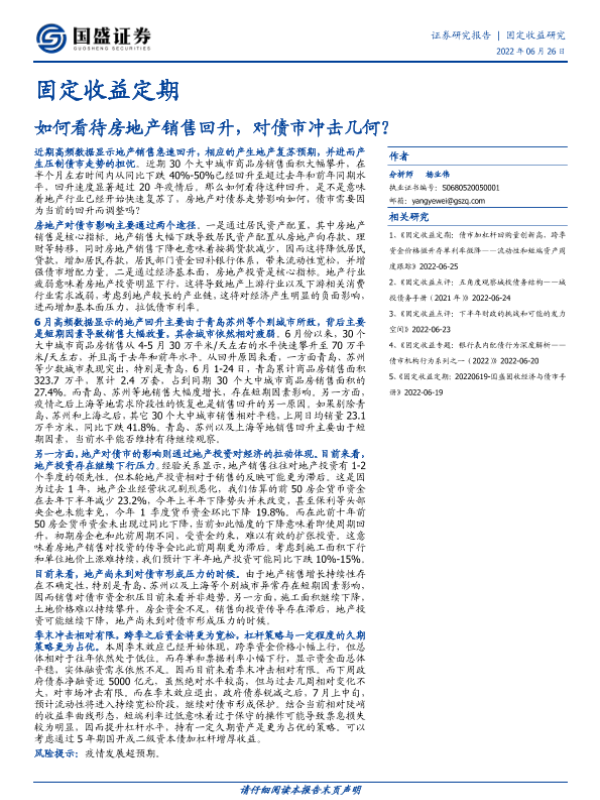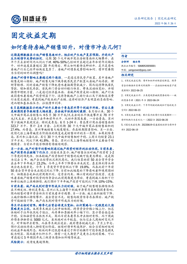 【国盛证券】【20220626】固定收益定期:如何看待房地产销售回升,对债市冲击几何?-15页