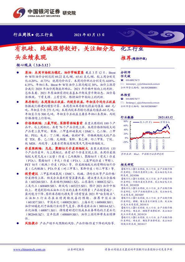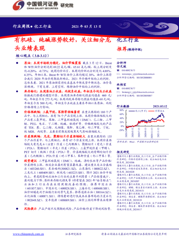 【银河证券】【20210313】中国银河-化工行业周报:有机硅、纯碱涨势较好,关注细分龙头业绩表现-17页