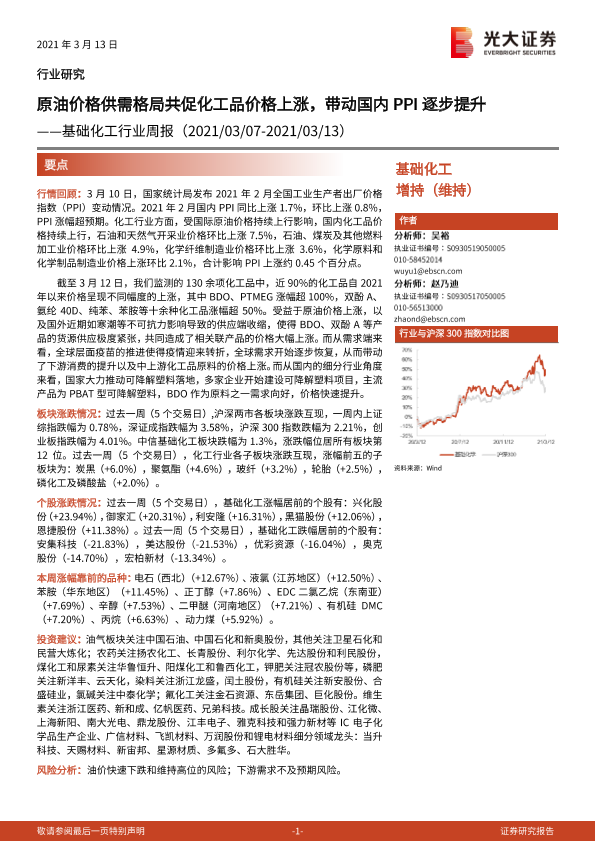 【光大证券】【20210313】基础化工行业周报:原油价格供需格局共促化工品价格上涨,带动国内PPI逐步提升-21页