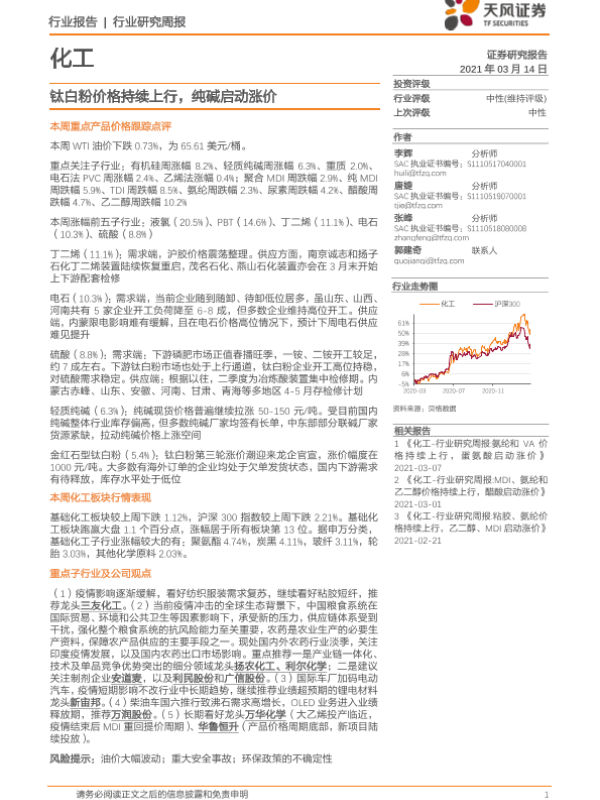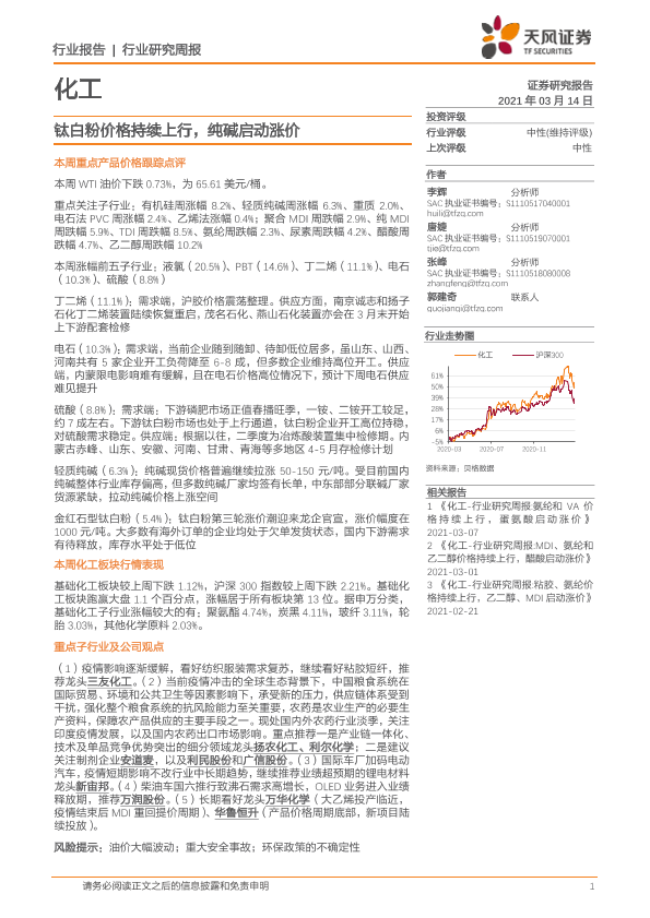 【天风证券】【20210314】20210314-天风证券-化工行业研究周报:钛白粉价格持续上行,纯碱启动涨价-21页