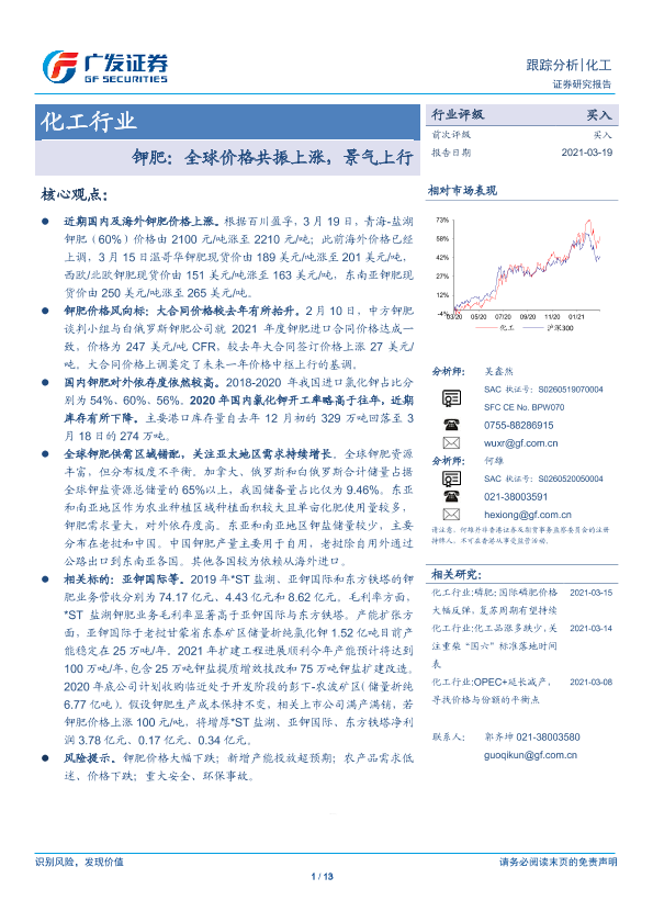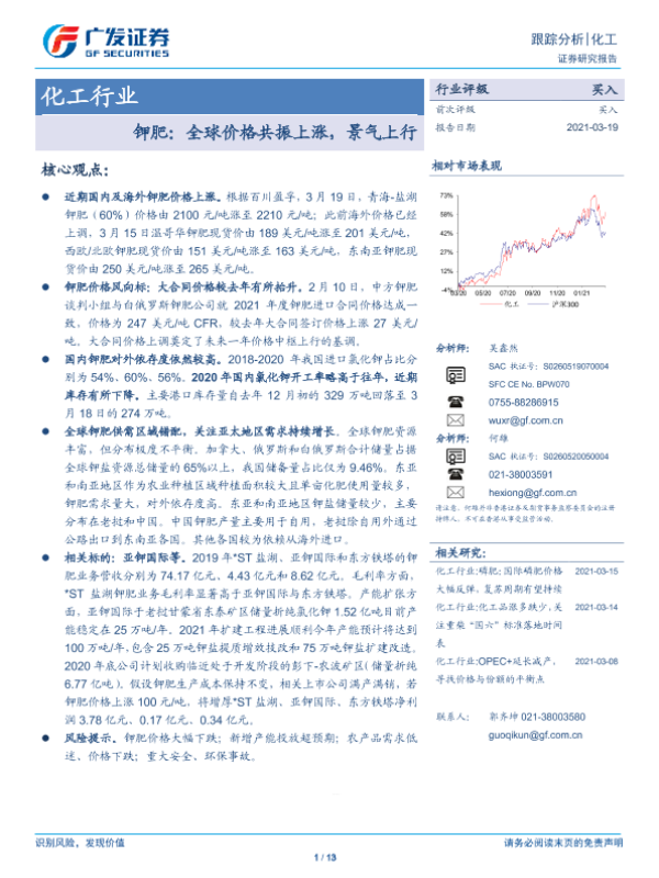 【广发证券】【20210319】化工行业-钾肥:全球价格共振上涨,景气上行-13页