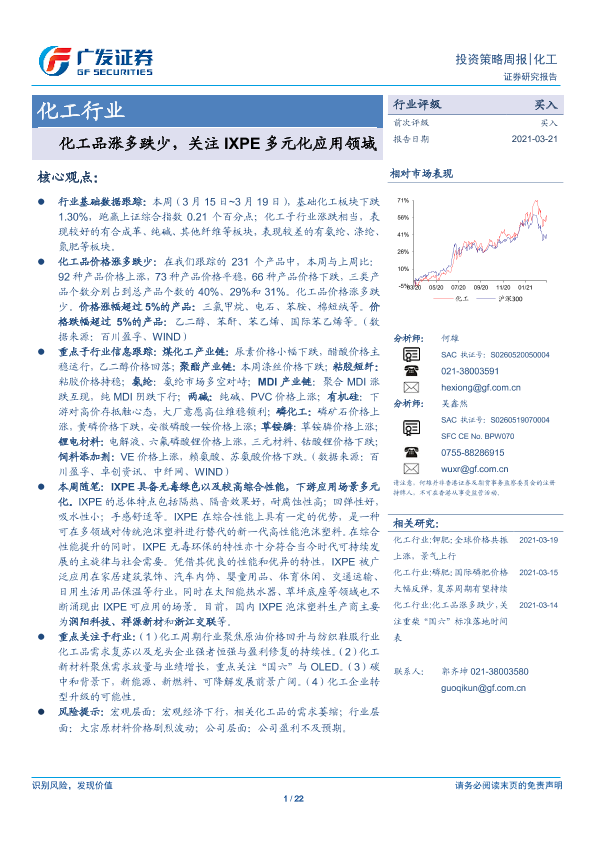 【广发证券】【20210321】化工品涨多跌少,关注IXPE多元化应用领域-22页