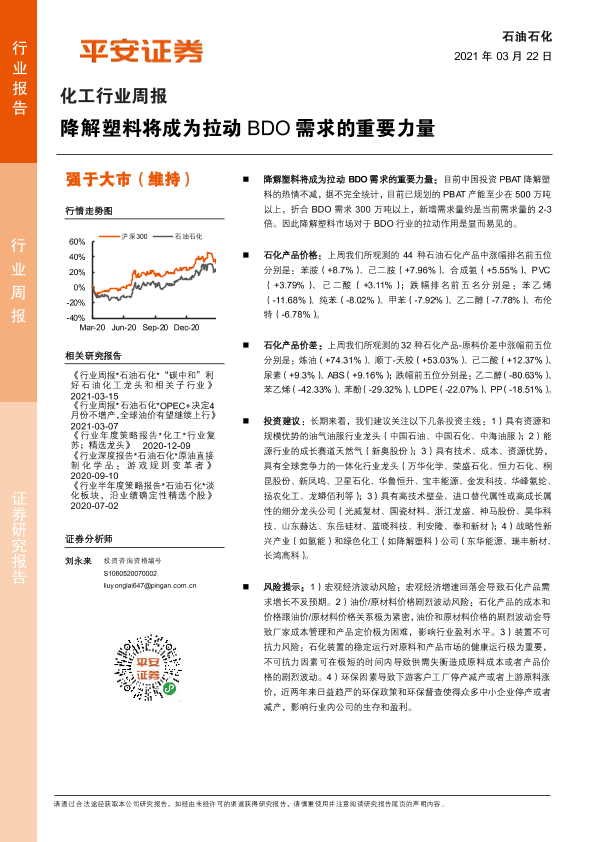 【平安证券】【20210322】20210322-平安证券-化工行业周报:降解塑料将成为拉动BDO需求的重要力量-13页