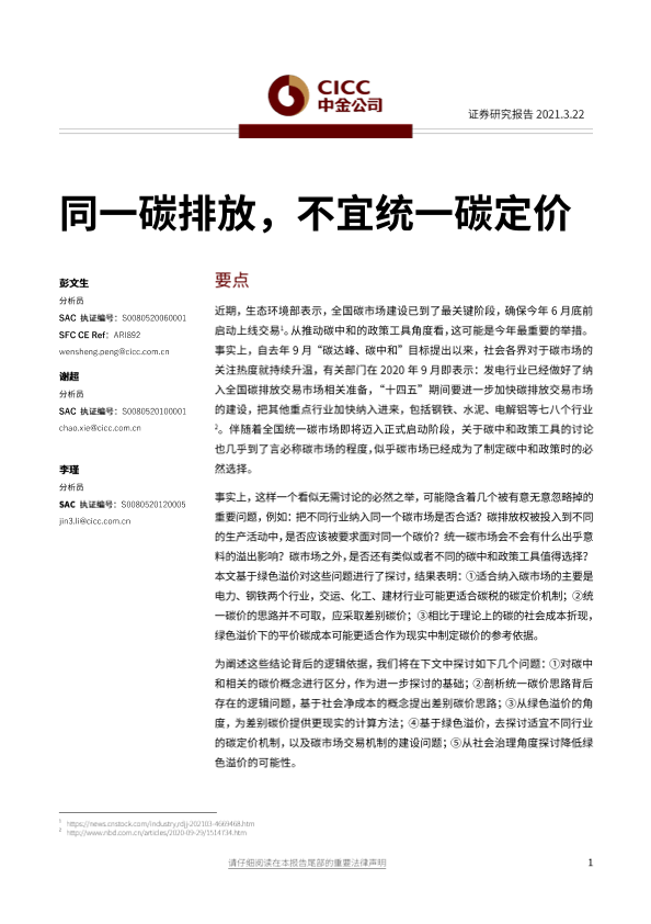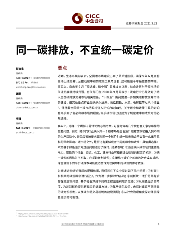 【中金公司】【20210322】基础化工行业:同一碳排放,不宜统一碳定价-26页