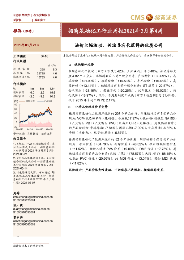 【海通证券】【20210327】招商基础化工行业周报2021年3月第4周:油价大幅波动,关注具有长逻辑的优质公司-26页