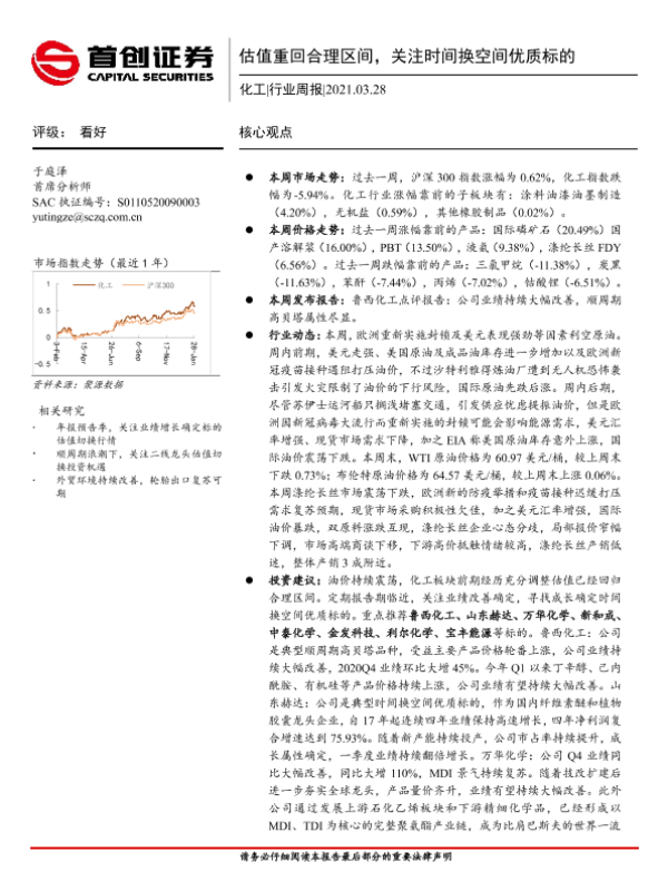 【首创证券】【20210328】20210328-首创证券-化工行业周报:估值重回合理区间,关注时间换空间优质标的-17页