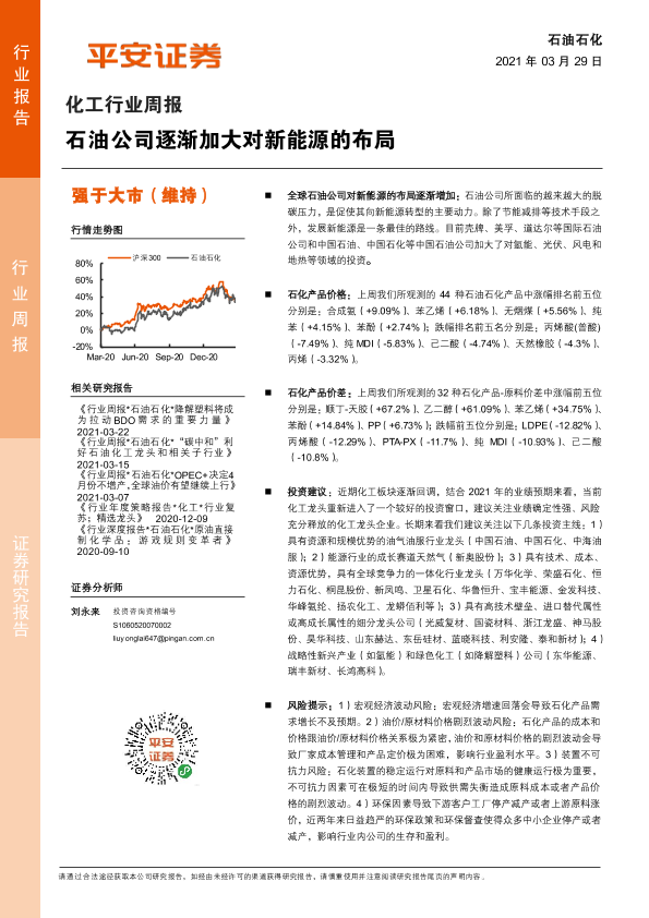 【平安证券】【20210329】20210329-平安证券-化工行业周报:石油公司逐渐加大对新能源的布局-13页
