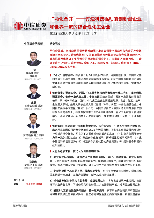 【中信证券】【20210331】“两化合并”——打造科技驱动的创新型企业和世界一流的综合性化工企业-18页