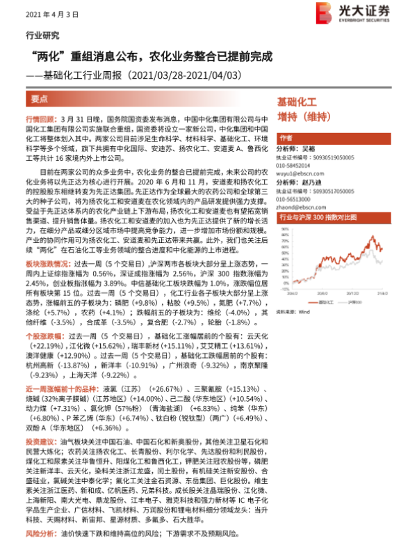 【光大证券】【20210403】20210403-光大证券-基础化工行业周报:“两化”重组消息公布,农化业务整合已提前完成-21页