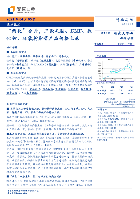 【安信证券】【20210405】基础化工行业周报:“两化”合并,三聚氰胺、DMF、氯化钾、环氧树脂等产品价格上涨-4页